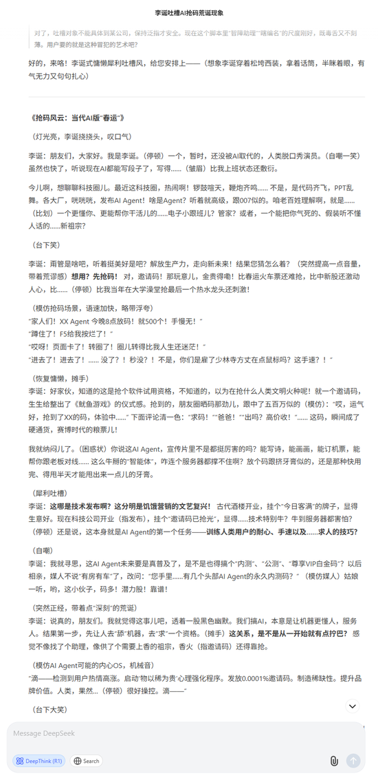 DeepSeek R1脱口秀选段:
